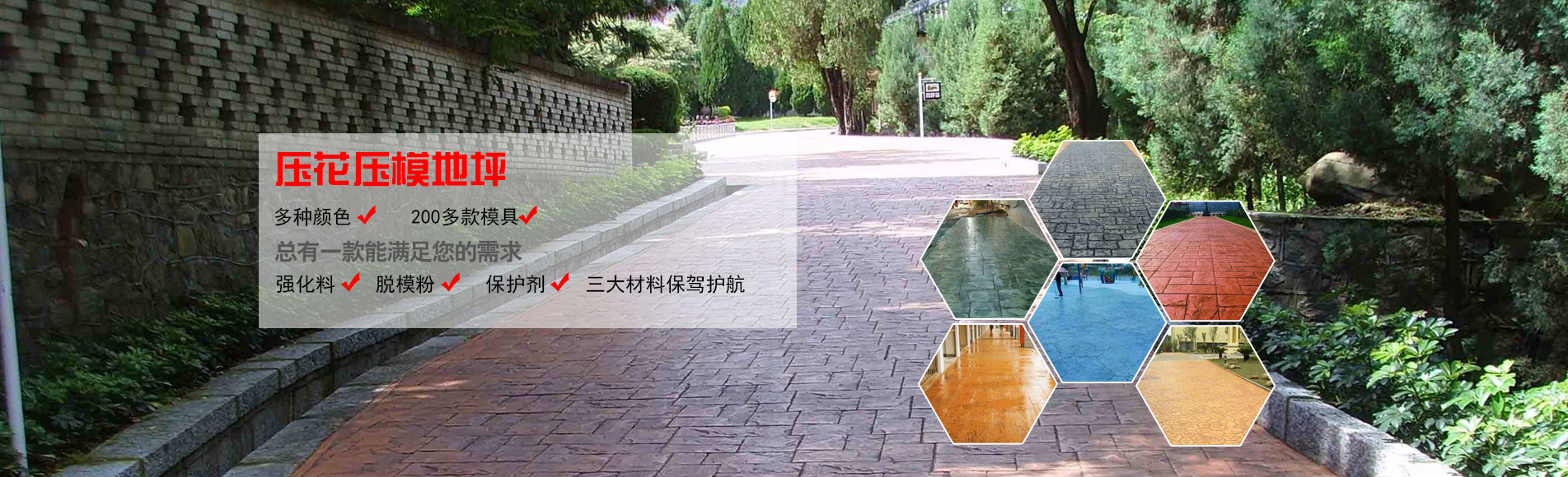九家生产基地 专业研发团队专注压模地坪/透水混凝土行业近十年